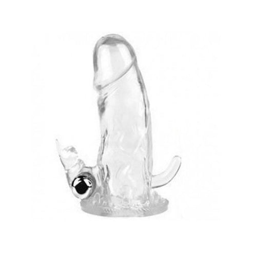 Funda elaborada en silicona premium que se adapta a cualquier tamaño de pene es muy suave, cómoda y flexible con vibración y estimulación para el clítoris. juguete sexual para hombre y mujer que aumentará el placer.