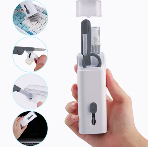 ¡Mantén tus dispositivos siempre como nuevos! Este práctico kit de limpieza multifuncional es ideal para teclados, audÃfonos, laptops, cámaras, celulares y más. Su diseño compacto incluye cepillo suave, punta limpiadora, esponja, pinza y rociador, permitiéndote eliminar polvo, migas y suciedad de los rincones más difÃciles.