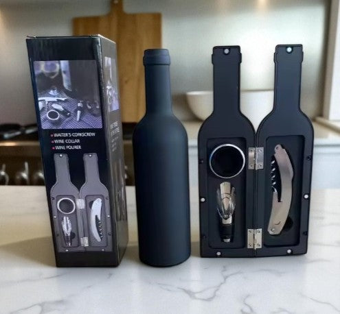 Con un diseño cómodo y funcional, este juego incluye todo lo que necesitas para abrir y disfrutar de tus botellas de vino favoritas con estilo y facilidad