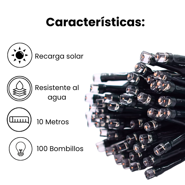 LUZ SOLAR NAVIDEÑA 10 M -100 BOMBILLOS X 6 UNDS - OMC-075