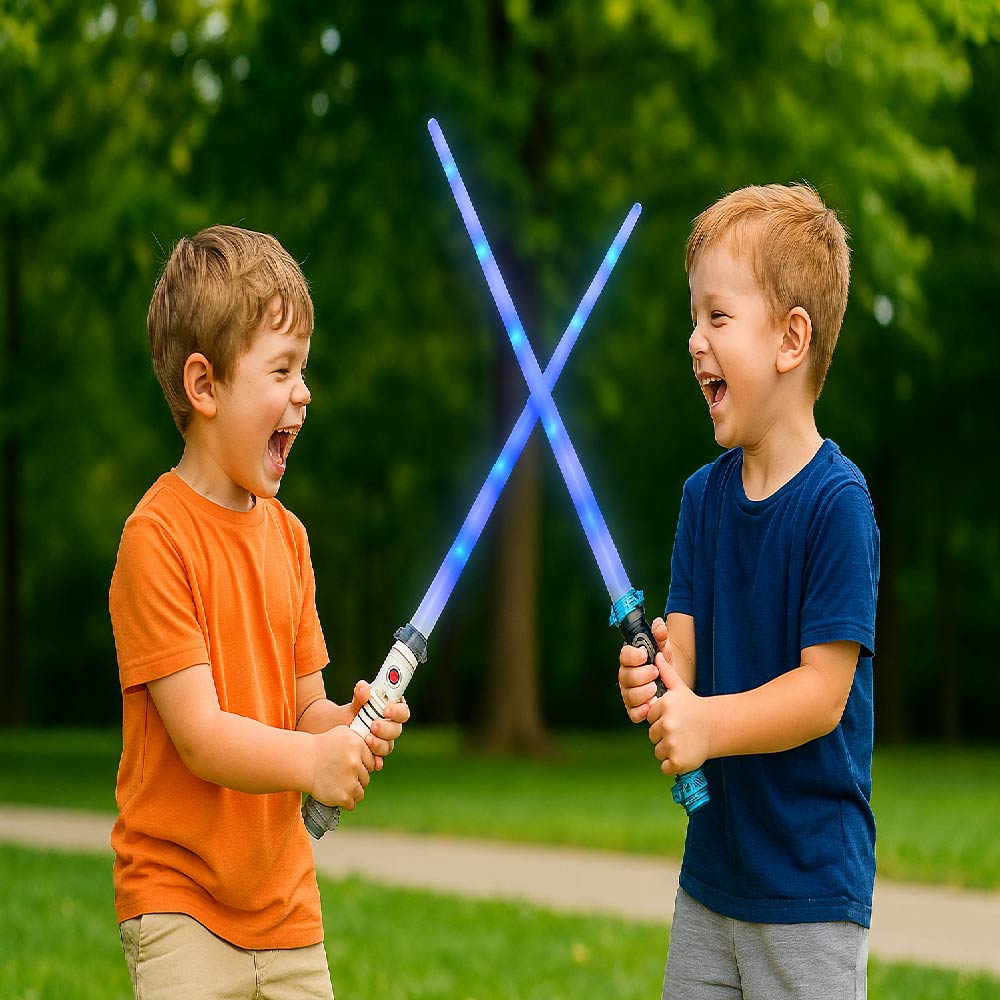 Estas espadas láser con luces LED son el complemento perfecto para que los niños vivan emocionantes aventuras intergalácticas. Vienen en colores llamativos, con efectos luminosos que brillan en la oscuridad, ideales para juegos al aire libre o fiestas temáticas. Su diseño ergonómico es seguro y cómodo para las manos pequeñas.