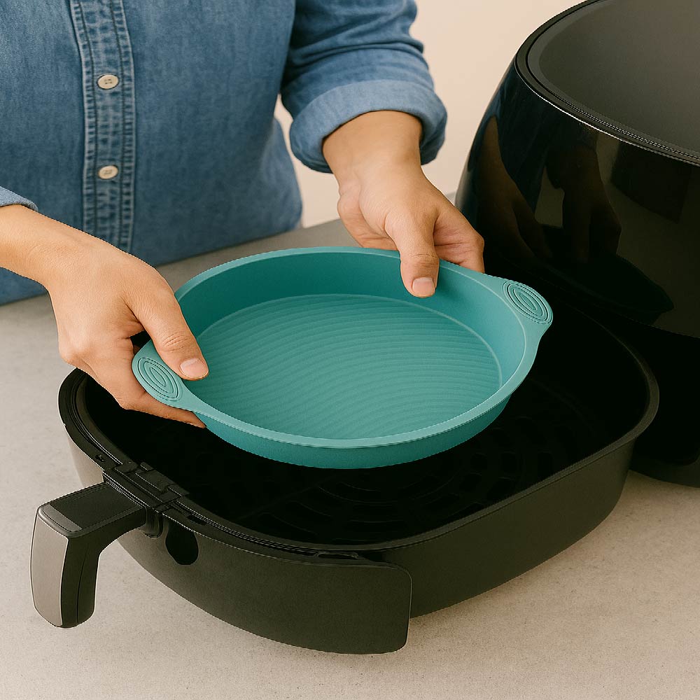 Preparar tus platos favoritos ahora es más fácil que nunca con nuestro molde en silicona para Air Fryer. Este ingenioso accesorio te permite cocinar una variedad de alimentos de manera rápida, saludable y sin complicaciones.