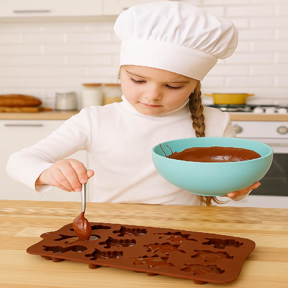 Con este molde de silicona con fuguras de dinosaurio, podrás crear postres, chocolates, gelatinas y más, con formas divertidas que encantarán a grandes y chicos.