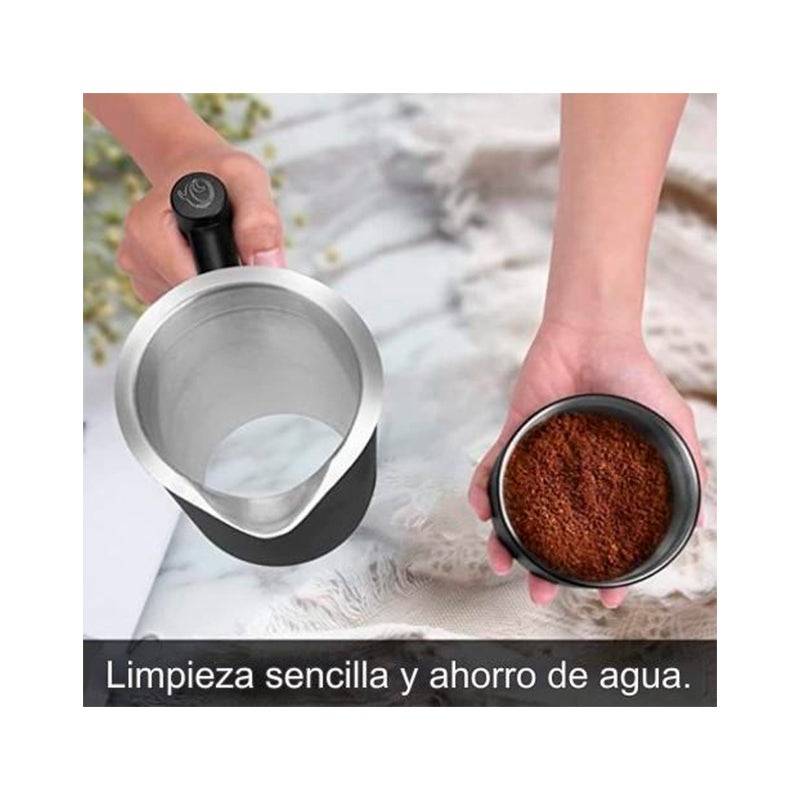 Disfruta de todo el aroma y sabor con esta prensa francesa en negro mate, práctica, elegante y resistente a altas temperaturas. Hecha en material inoxidable, es espaciosa y perfecta para preparar tu café favorito de forma fácil y rápida.