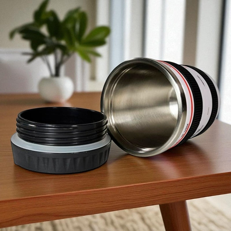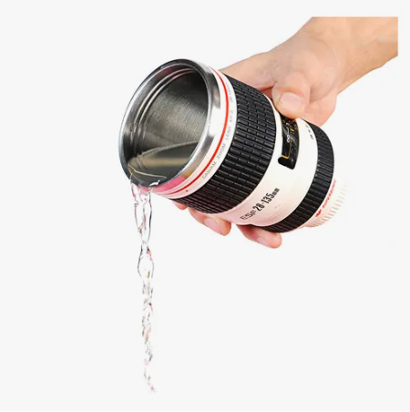 Sorpréndete con este increíble mug en forma de lente de cámara, diseñado para quienes aman capturar momentos y disfrutar de su bebida favorita en cualquier lugar.